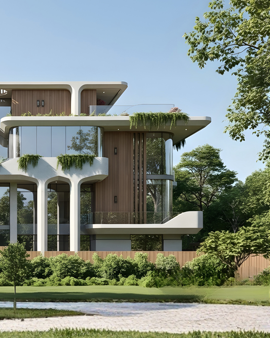 Cascade House is envisioned as a fluid, nature-responsive residence where architecture unfolds in soft layers rather than rigid lines. Extensive glazing and deep terraces allow natural light, greenery, and views to permeate the interiors, reinforcing a seamless dialogue between the built form and its surroundings.