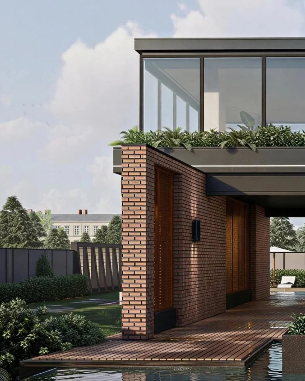 Materiality plays a central role in shaping Ember’s identity—rich stone textures, warm wood finishes, and subtle metal accents come together to create a refined yet earthy palette. The landscaping is deliberately immersive, wrapping the built form in soft greenery and water elements to enhance the sense of serenity.