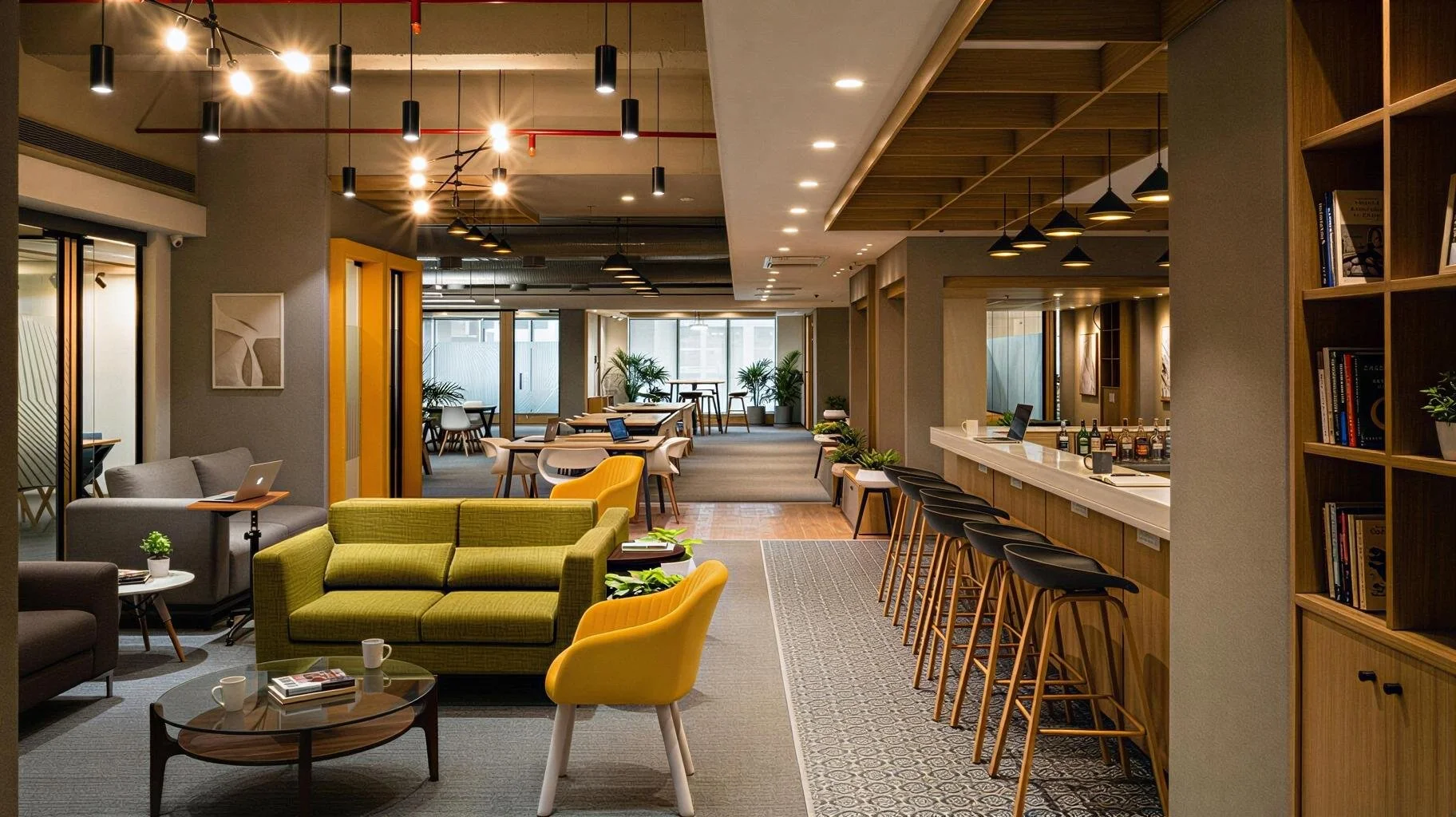 The Goodworth Office in Greater Noida is designed as a warm, people-centric workspace that balances professionalism with calm. Natural wood finishes, soft lighting, and integrated greenery create a welcoming atmosphere while reinforcing a sense of openness.